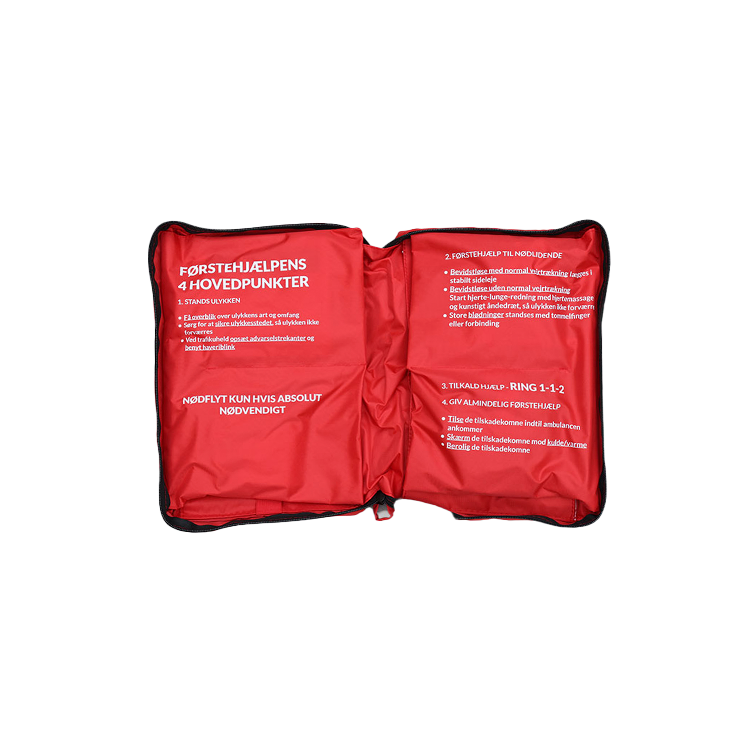 Førstehjælpstasken er fremstillet i høj kvalitet og er uundværlig, når uheldet er ude. Den kan bruges ved alle typer ulykker og er ideel til både bil, båd og hjem.