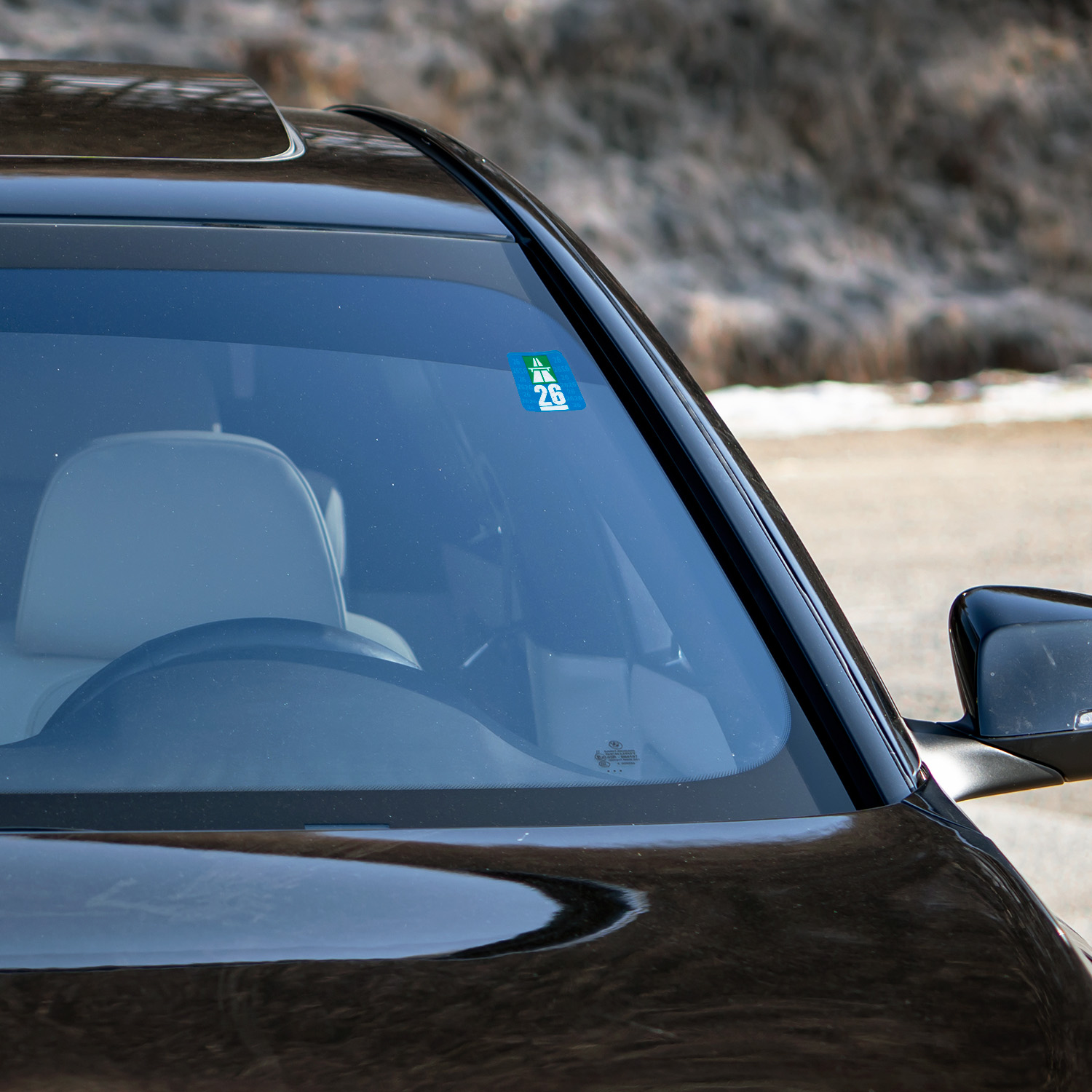 Mærkatet er gældende fra 1. december 2025 til og med 31. januar 2027. Bliver mærkatet ødelagt, fx ved en knust rude, skal der købes et nyt mærkat.